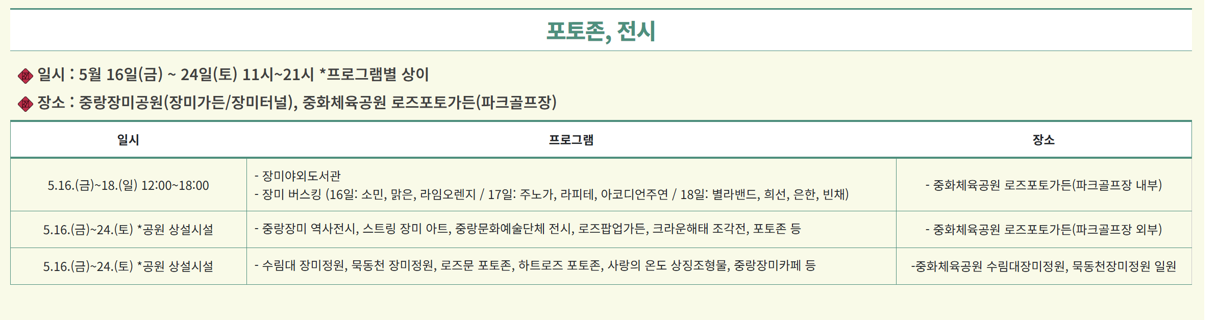 중랑 서울 장미축제 프로그램